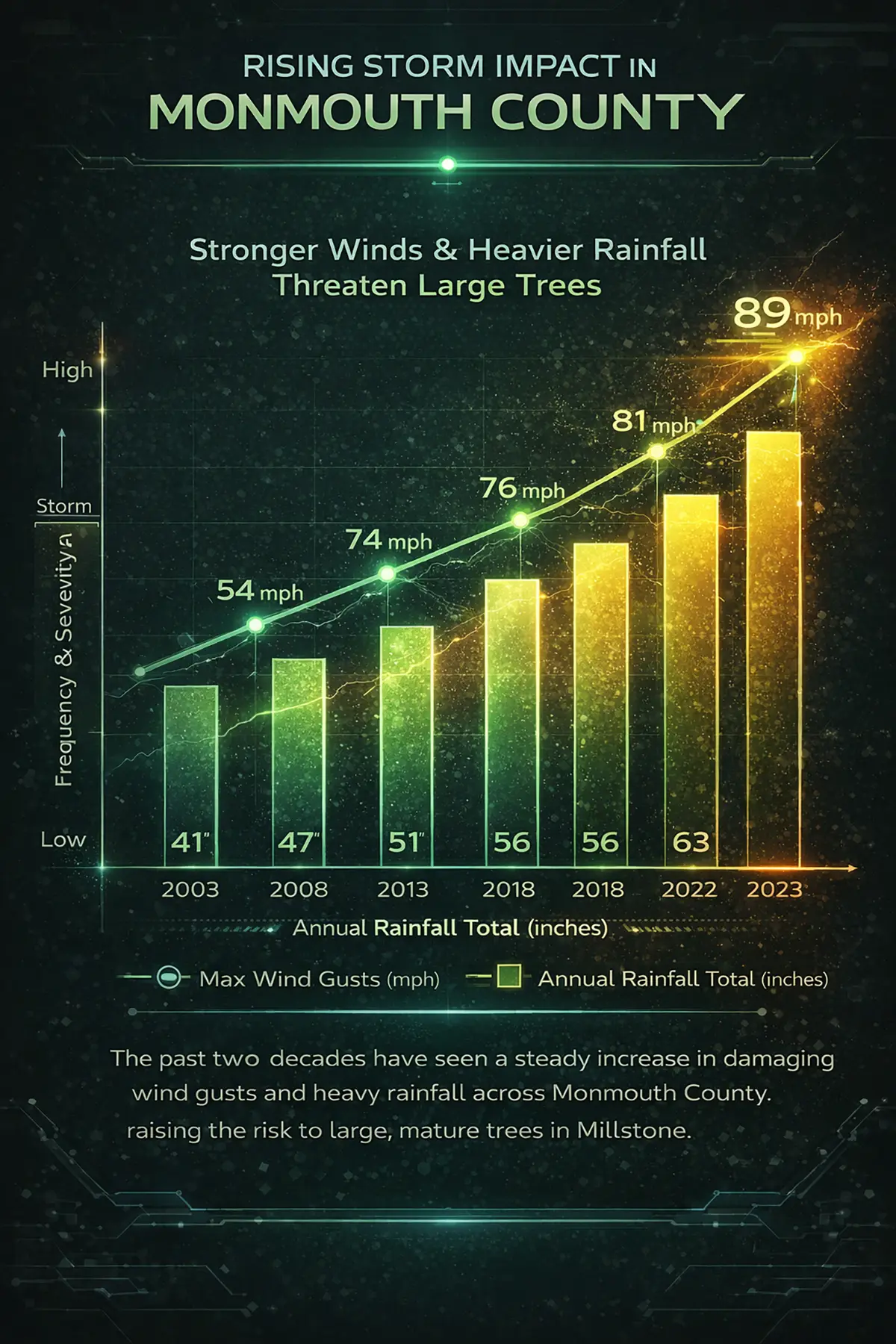 Millstone’s combination of clay soil, seasonal saturation, and wind exposure increases the likelihood of root plate instability. Risk assessments help homeowners make informed decisions instead of reactive ones.